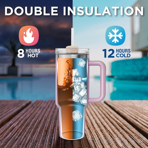 Product Name: 40 oz Stainless Steel Tumblers with Handle, Spill-proof Lid and Straw, Double-Walled Insulated, BPA-Free, Perfect for Hot and Cold Drinks