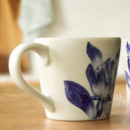White Ceramic Coffee Mug with Floral Print - Set of 2 Elegant & Stylish