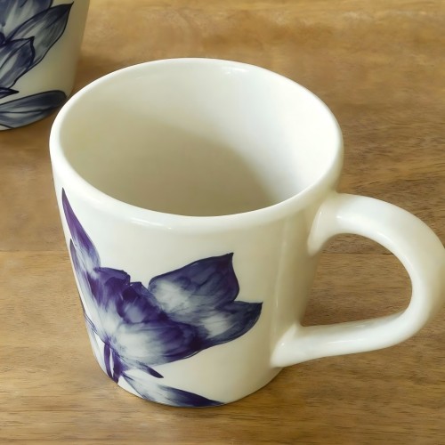 • White Ceramic Coffee Mug with Floral Print - Set of 2 Elegant & Stylish