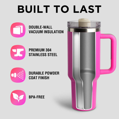 Product Name: 40 oz Stainless Steel Tumblers with Handle, Spill-proof Lid and Straw, Double-Walled Insulated, BPA-Free, Perfect for Hot and Cold Drinks
