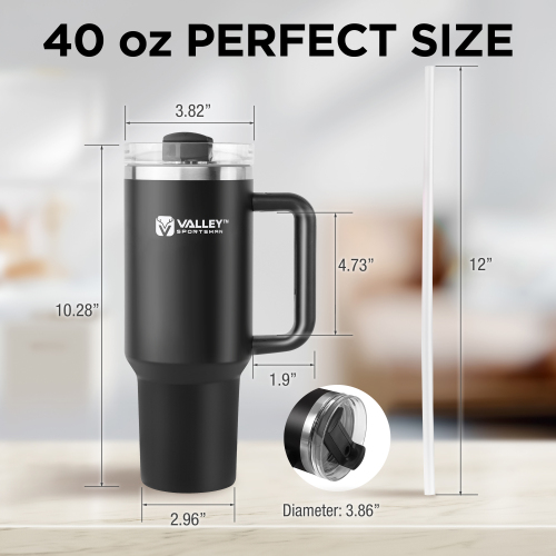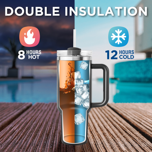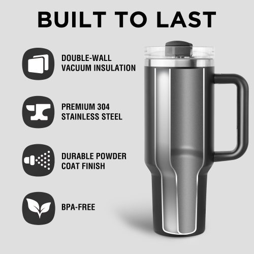 Product Name: 40 oz Stainless Steel Tumblers with Handle, Spill-proof Lid and Straw, Double-Walled Insulated, BPA-Free, Perfect for Hot and Cold Drinks