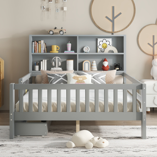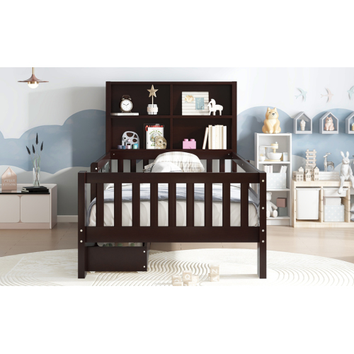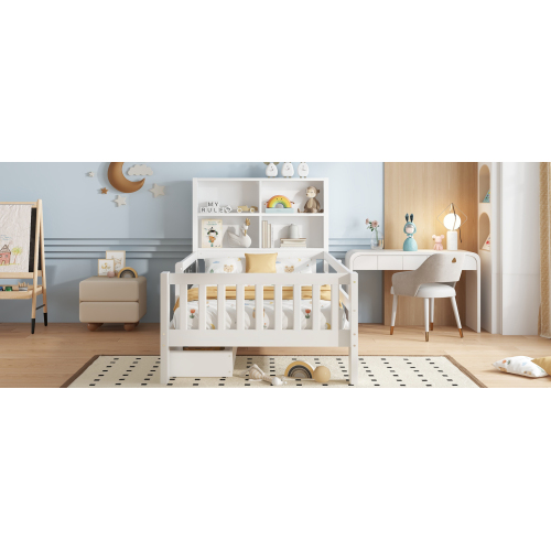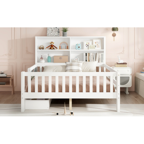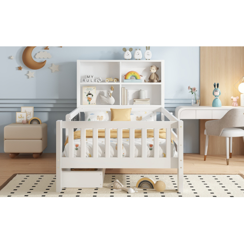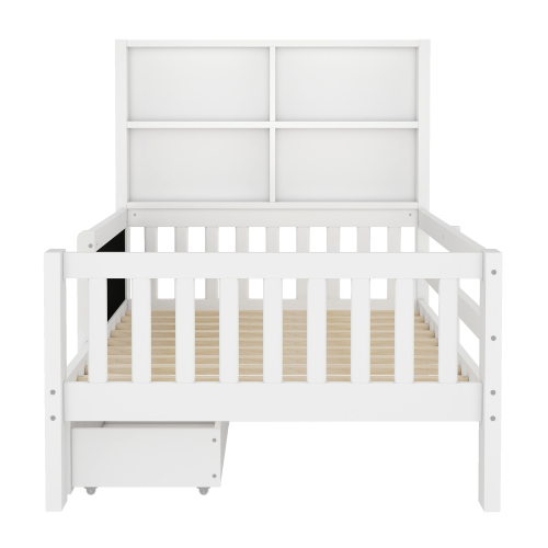 Product Name: Twin Platform Bed with Chalkboard,Solid Wood Platform Bed with Storage Drawers and Shelves,Childlike Fun and Space-saving Design,White