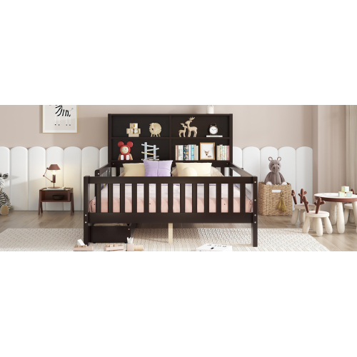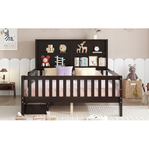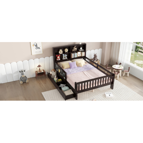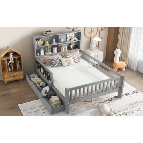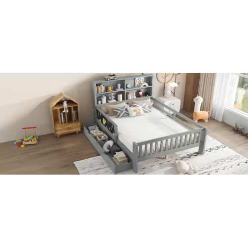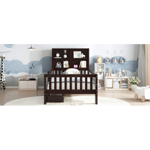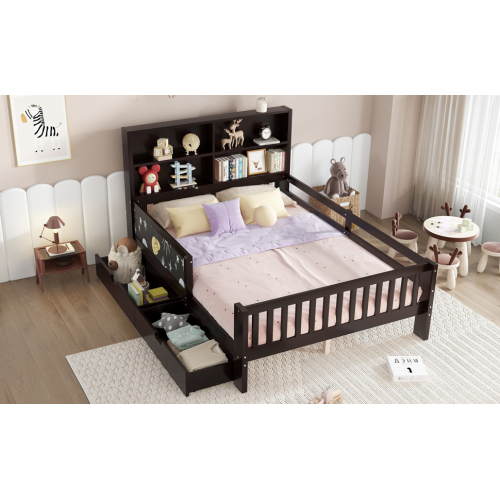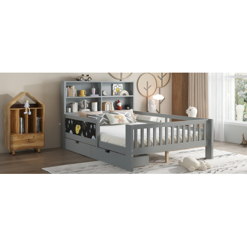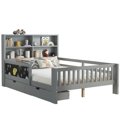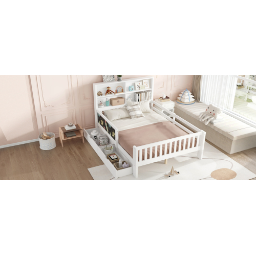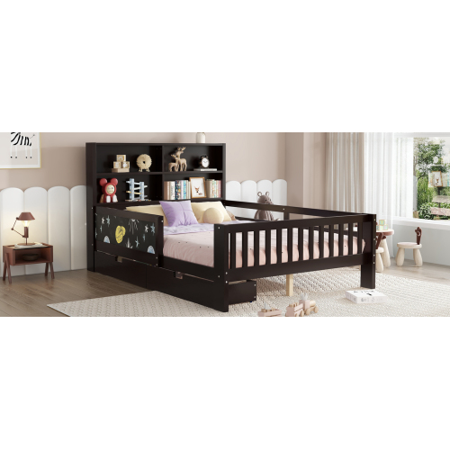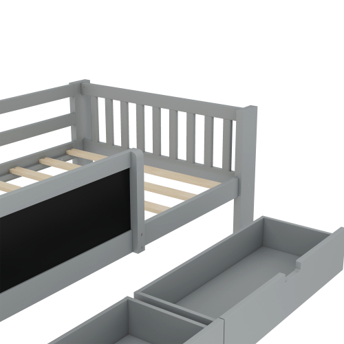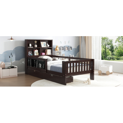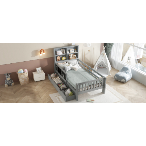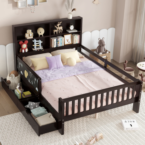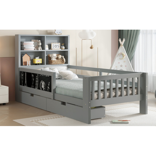 • Twin Platform Bed with Chalkboard,Solid Wood Platform Bed with Storage Drawers and Shelves,Childlike Fun and Space-saving Design,White