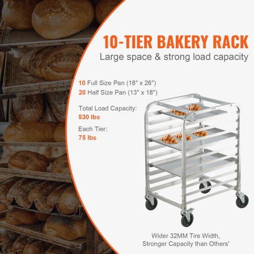 Product Name: Bun Pan Rack, 10-Tier Commercial Bakery Racks with Brake Wheels, Aluminum Racking Trolley Storage for Half & Full Sheet, Speed Rack For Kitchen Home, Bread Baking Equipment, 26"L x 20.3"W x 39"H